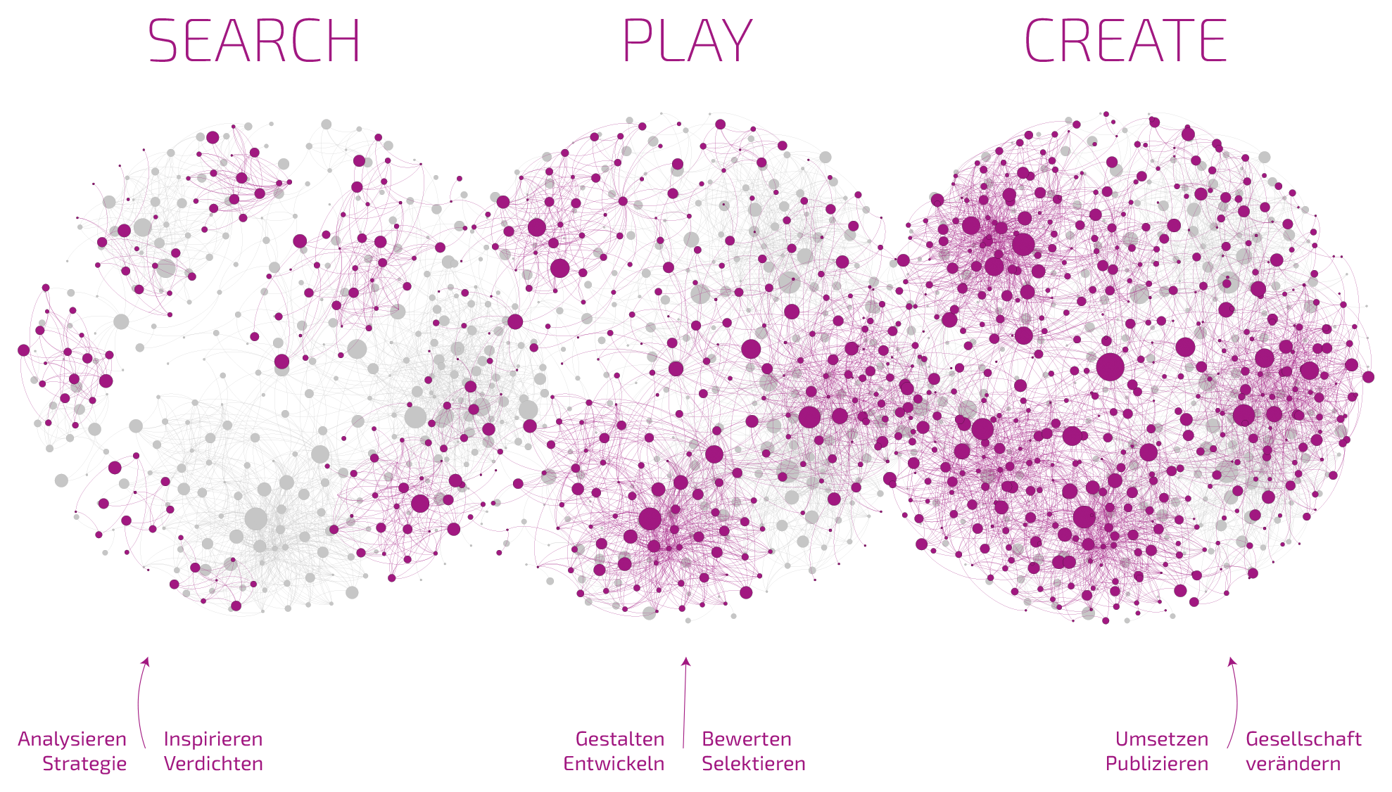 Wir sind Bedeutungsproduzenten und sehen uns in der Verantwortung, Tranformationsprozesse mit zu gestalten, Denkweisen zu verändern und Teil einer sinn- und werteorientierten Welt zu sein. Entlang dieser Zukunftsfragen streben wir nach Verbesserungen für Kunden, Konsumenten und die Lebensumwelt. Auf Augenhöhe mit unseren Partnern verwirklichen wir diese gemeinsame Vision. Wir werden den kreativen Prozess der PLAY-Phase, indem wir für ausgewählte Konzepte Umsetzungsvarianten ermitteln und anpassen, bis wir die optimale Lösung gefunden haben. Architekturen, Design und Medien sind für uns zentrale Gestaltungsmittel. Es folgt die Planung und Konstruktion hin zur Verwirklichung in Material und Maßstab.